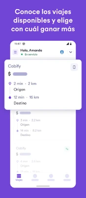 Cabify Driver tarjoaa sinulle ainutlaatuisen mahdollisuuden muuttaa ajosi tuottavaksi liiketoiminnaksi. Unohda perinteiset rajoitukset ja löydä joustava tapa ansaita rahaa taksinkuljettajana tai kyytipalvelun tarjoajana. Cabify priorisoi turvallisuutesi jokaisella matkalla: kehittynyt paikannus, matkustajien tunnistus ja riskialueiden rajoitukset varmistavat mielenrauhasi ratin takana. Nauti joustavista työajoista ja tiedä tarkalleen, paljonko tienaat jokaisesta suorittamastasi kyydistä. Olemme vakaa ja läpinäkyvä kumppani menestyksellesi.