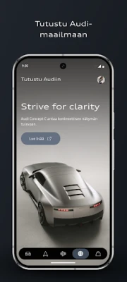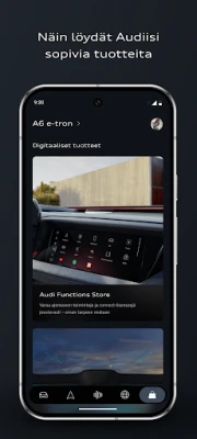 myAudi-sovellus edustaa Audin digitaalisen matkakumppanuuden neljättä sukupolvea, joka on suunniteltu mullistamaan arjen mukavuuden ja ajoneuvosi vuorovaikutuksen. Se avaa oven jatkuvasti kehittyvään käyttökokemukseen, jossa intuitiivisuus ja käyttäjäkeskeisyys ohjaavat jokaista toimintoa. Tämän vision myötä ajoneuvosi tärkeimmät tiedot ja hallinta ovat aina käden ulottuvilla, saumattomasti integroituina digitaaliseen elämääsi. Sovelluksen päivitetty rakenne ja helppokäyttöisyys tekevät siitä korvaamattoman työkalun jokaiselle Audin omistajalle.